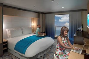 Unicità del balcone abitabile consente un esperienza unica esclusivamente alla vacanza in crociera, totalemente fronte mare. |
